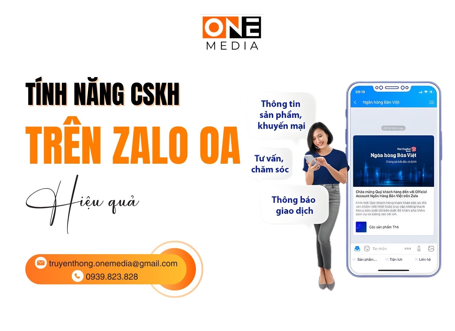 Với đội ngũ chuyên gia giàu kinh nghiệm trong lĩnh vực dịch vụ marketing đa nền tảng, ONE Media sẽ giúp doanh nghiệp của bạn khai thác tối đa tiềm năng của Zalo OA – từ thiết lập tài khoản, tối ưu nội dung, đến vận hành chatbot tự động.